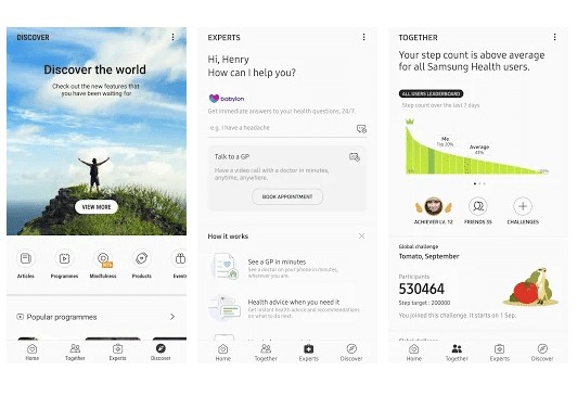 واحد من أشهر تطبيقات اللياقة البدنية علي الأجهزة العاملة بنظام التشغيل اندرويد حيث يقدم تطبيق Samsung Health ميزات أساسية للياقتك البدنية والصحية لا غني عنها وأيضاً يقدم لك التطبيق أنظمة غذائية لتساعدك علي معايشة حياة صحية مثالية ويساعدك أيضاً التطبيق في تنظيم وقتك عند ممارسة الرياضة سوء كنت تمشي وتركض أو تركب دراجة مع متابعة معدل ضربات القلب وضغط الدم ومستويات السكر في الدم والضغط والوزن باستخدام أجهزة استشعار مدمجة وأجهزة خارجية حيث يتطلب Samsung Health نظام تشغيل اندرويد 6.0 أو الأحدث .