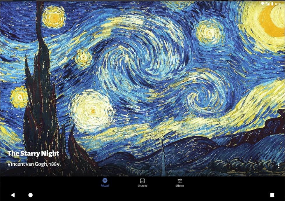 يعد تطبيق Muzei واحد من أفضل التطبيقات المتخصص في الخلفيات الحية ويتميز أنه يقوم بتحديث الشاشة الرئيسية كل يوم بالأعمال الفنية الشهيرة وأيضاً من خلال النقر علي الصورة وهي في وضع التخصيص تستطيع أن تتحكم في نسبة السطوع الخاصة بها ويمكنك اختيار صورك المفضلة من المعرض الخاص بك أو التطبيقات الأخرى لاستخدامها على الشاشة الرئيسية .