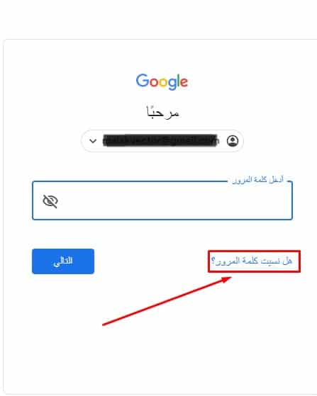 2- ثم أضغط علي جملة ” هل نسيت كلمة السر ؟ ” التي ستجدها باللون الأزرق أسفل خانة البريد الإلكتروني كما هو مُوضح بالصورة التالية :