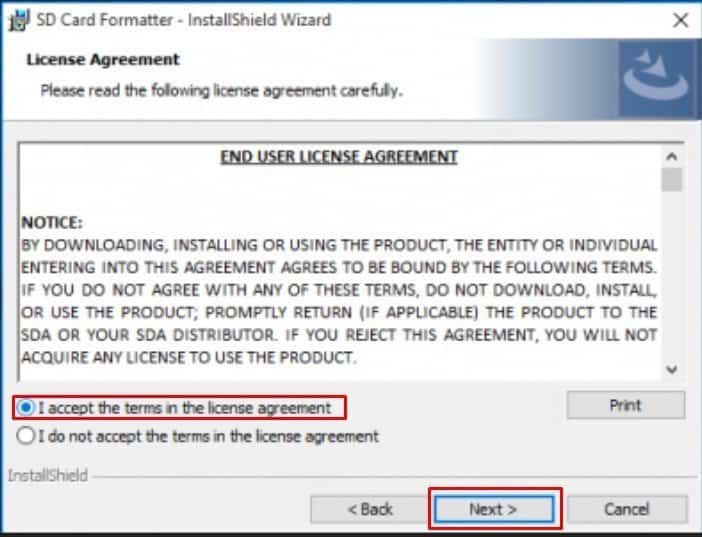 الخطوة الثانية : ستظهر لك بعد ذلك هذه نافذة أخرى موجود بها شروط تشغيل البرنامج فقم بالضغط على I accept the terms in the license agreement للموافقة على هذه الشروط ثم أضغط على Next كما في الصورة التالية :