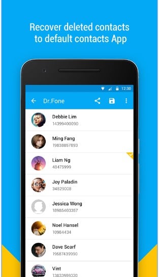 إن هذا الجزء خاص باستعادة الأسماء التي قمت بحذفها من جهازك وهي ميزه فريدة جداً من نوعها ولا تستطيع الحصول عليها في العديد من التطبيقات فقط ستحصل عليها بعد تحميل تطبيق Dr.Fone وبعد اختيار البيانات التي تريد استرجاعها يقوم التطبيق بإرسال هذه البيانات إلى (Dropbox أو Google Drive ) في حالة إذا أردت أن تقوم بحفظ بياناتك بمكان أخر غير هاتفك .