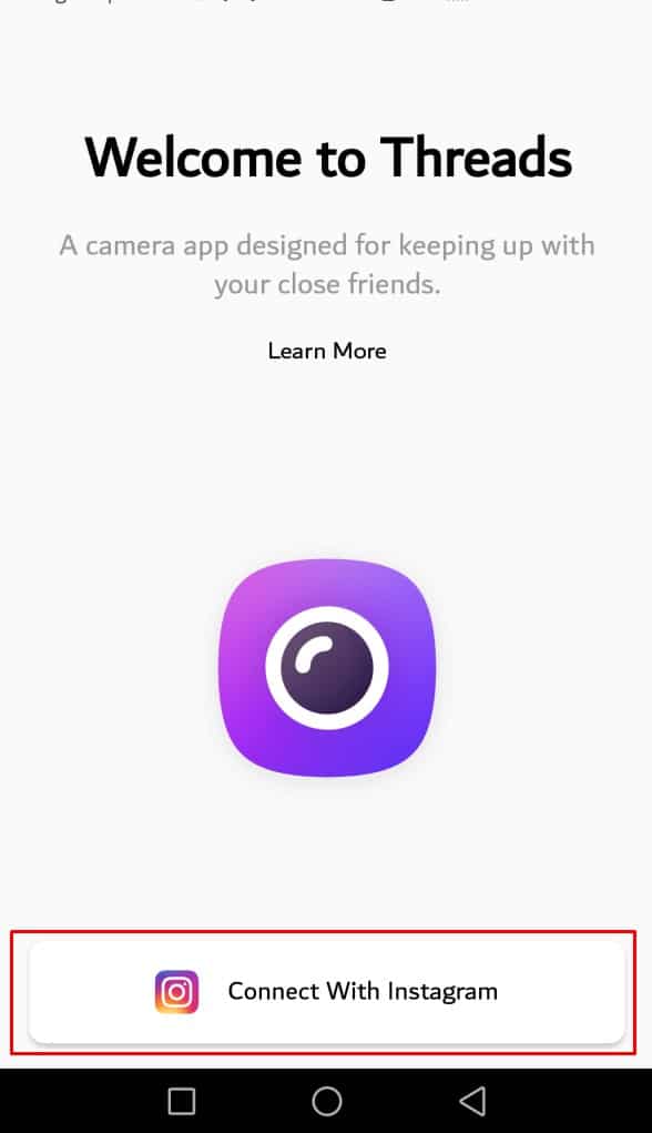 ثانياً : ستظهر الواجهة الأولي للتطبيق كما في الصورة التالية فأضغط Connect With Instagram :
