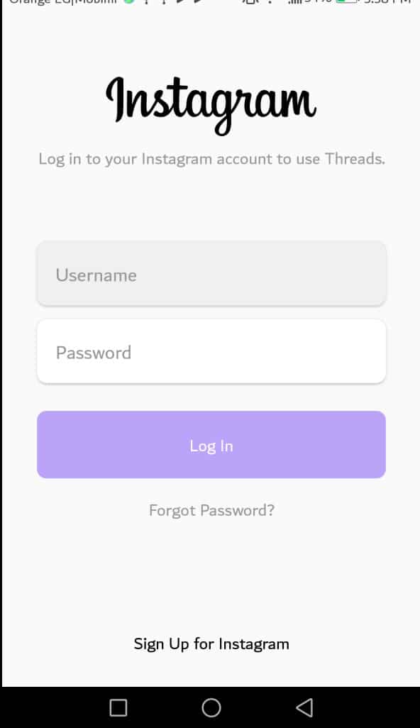 ثالثاً : أدخل الاسم وكلمة المرور الخاصة بتطبيق انستقرام الخاص بك ثم Log in :