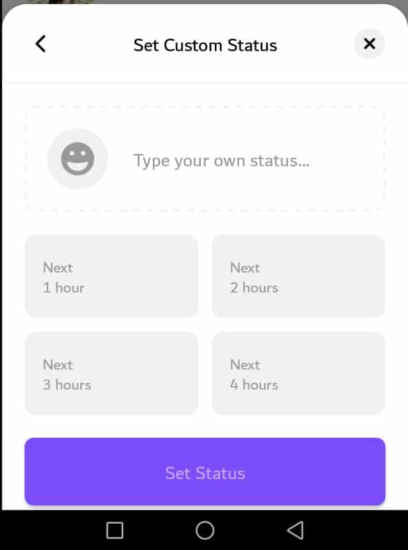 يمكنك أن تعد حالات بشكل مُسبق والتطبيق يقوم بعرضهم تلقائياً دون تدخل منك فعلي سبيل المثال بعد ساعة ستكون الحالة مذاكرة ? وبعد ساعتين ستكون الحالة في الحديقة ? وبعد ثلاث ساعات ستشرب القهوة ☕ وبعد أربعة ساعات ستلعب كورة ⚽ والمتاح لك أربعة حالات خلال أربعة ساعات ( بعد ساعة وساعتين وثلاث ساعات وأربعة ساعات ) حيث يمكنك أختيار الرمز التعبيري للحالة وكتابة ما يعبر عن ما بداخلك وستظهر الحالة بجانب الصورة الشخصية كما ذكرنا سابقاً .