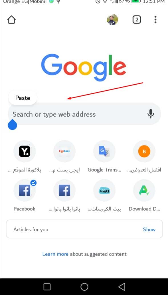 3- بمجرد وضع الرابط في خانة مؤشر البحث سيظهر لك كما هو موجود في الصور التالية فأضغط عليه :