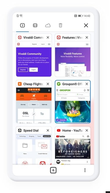 ومن المميزات التي تحدث عنها سابقاً جون فون تيتشنر أثناء مقابلة له مع وكالة رويترز أنه يعزز في المتصفح تجربة فريدة أثناء فتح أكثر من تبويبه على شاشة الهاتف ولذلك سنجد أن المتصفح يقوم بحفظ علامات التبويب بشكل منظم حتي تستطيع التمرير بينهما سريعاً بالإضافة إلي ذلك يمكنك استخدام أداة تبديل علامات التبويب الخاصة بعلامات التبويب المفتوحة وأيضاً علامات التبويب التي قمت بإغلاقها مؤخراً أو حتي التي قمت بفتحها من على جهاز أخر فالتركيز على فتح أكثر من تبويبه من خلال المتصفح كان أمراً مهماً بالنسبة لجون فون تيتشنر وهذا ما وجدناه بالفعل في فيفالدي .
