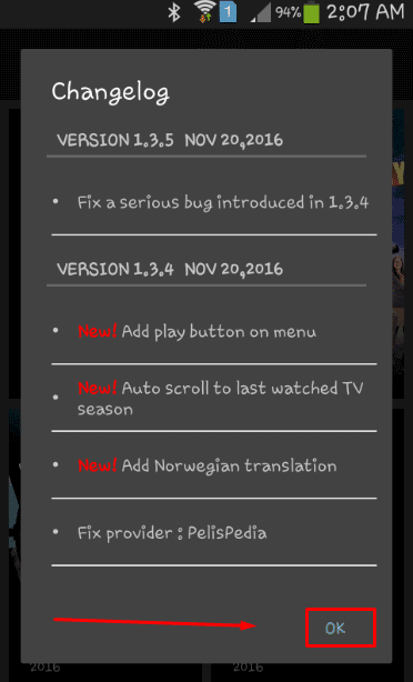 قم بفتح التطبيق بعد الانتهاء من التحميل وستظهر لك تلك الشاشة كما هو موضح في الصورة التالية والتي تخبرك ماهو الجديد في تلك النسخة v1.3.7 من التطبيق :