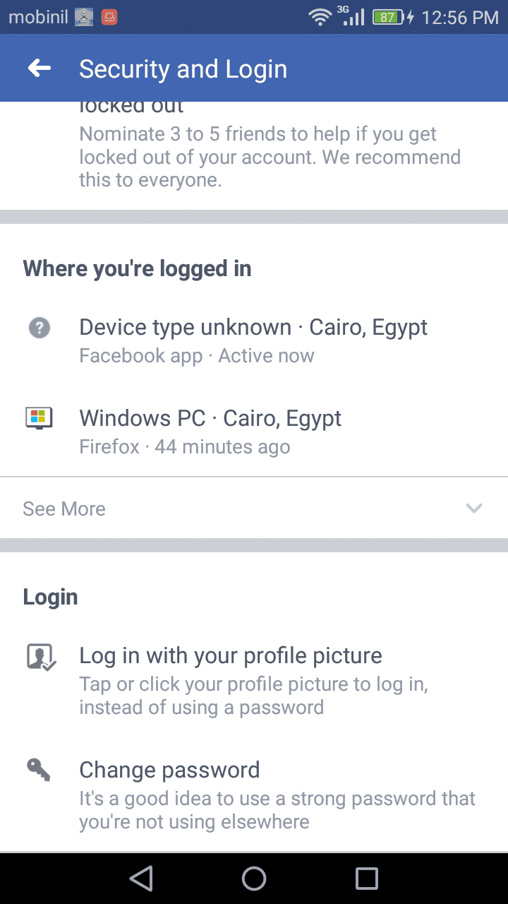 قم بالضغط علي see more ستجد قائمة بالأجهزة التي قمت بفتح الماسنجر من خلالها قم بالضغط علي Log Out وبذلك قمت بتسجيل الخروج من فيس بوك ماسنجر .