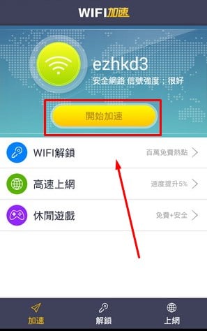 ثالثاً : والآن تستطيع ان تقوم بفتح التطبيق وسيظهر لك كما هو موضح في الصورة التالية فقط كل ما عليك فعله هو الضغط على هذا المربع الأصفر وسيبدأ التطبيق في العمل فوراً وستلاحظ الفرق الهائل في سرعة اتصالك بالإنترنت عن طريق شبكة الواي فاي .