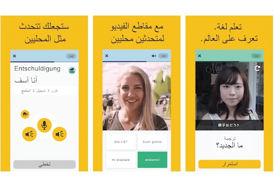 التعلّم ممتع ومجاني %100 الإنجليزية والإسبانية والفرنسية والألمانية والإيطالية والبرتغالية ومتوفر الآن للناطقين باللغة العربية ومن أهم اختيارات جوجل بلاي في 2013 و2014 وتم اختياره من أفضل التطبيقات لتعلّم اللغات “بين تطبيقات تعلم اللغات أو التدريب عليها ” أفضل تطبيق مجاني لتعلم اللغات بمراحل تعليمية مختلفة بالطريقة التي تحب أن تتعلم بها اللغات .
