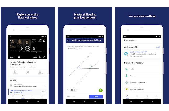 العديد من التدريبات التفاعلية ومقاطع الفيديو المتنوعة والمقالات في متناول يدك من خلال هذا التطبيق وادرس الرياضيات والعلوم والاقتصاد والتمويل والقواعد والتاريخ والحكومة والسياسة وغير ذلك من المواضيع المتنوعة .