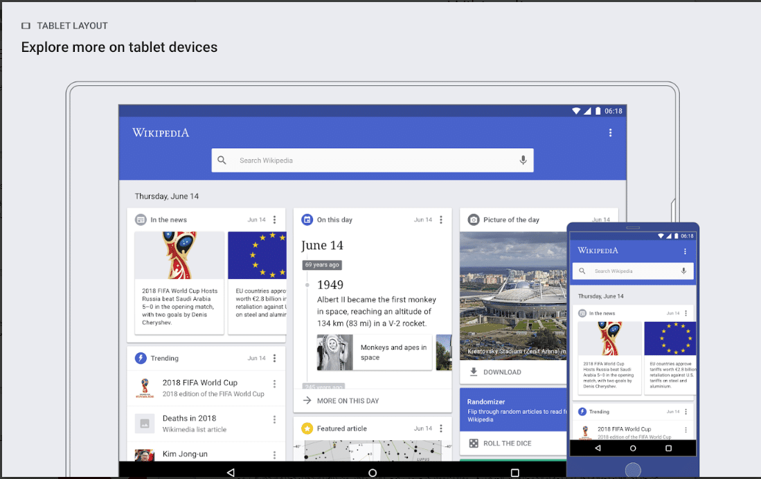 ويكبيديا الغنية عن التعريق كونها أكبر موسوعة حرة في العالم علي الإنترنت وتقدم أكثر من 40 مليون مقال وبأكثر من 300 لغة مختلفة وتساعدك في توفير المقالات المختلفة ذات الصلة بما قمت بالبحث عنه وتقوم بحفظ وتنظيم المقالات التي تستعرض في قراءة القوائم مع خاصية البحث الصوتي بالإضافة إلي معرض الصور ذات الدقة العالية .