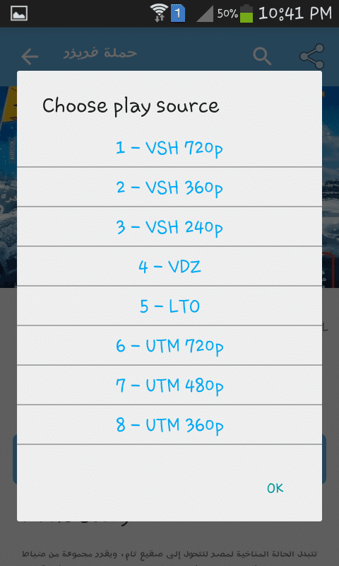 ثالثاً: بعد اختيار المشاهدة ستقوم الآن باختيار جودة الفيلم كما هو موضح من ضمن العديد من الاختيارات لتتناسب مع جميع سرعات الإنترنت المختلفة .