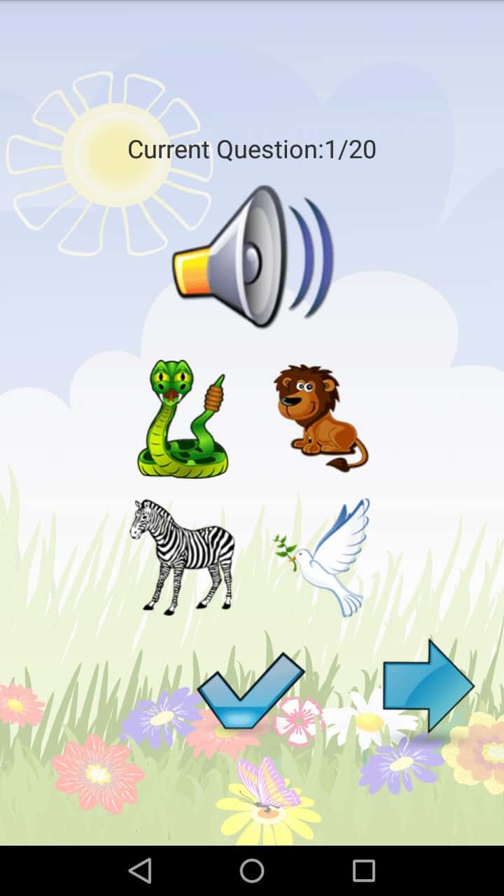 رابعاً : ولكن عند اختيارك للاختيار الثاني Listen and guess يمكنك الاستماع للكلمه وتخمينها ثم الاختيار من أربع صور أمامك .