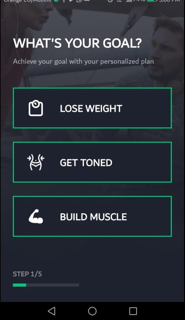 أولاً : بعد أنتهاء عملية التثبيت ستظهر لك واجهة بها 3 خيارات ( الخيار الأول لفقدان الوزن – الخيار الثاني للحصول علي تناسق في جسدك – الخيار الثالث بناء العضلات ) فسنختار علي سبيل المثال الخيار الأول :