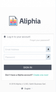 أما عن طريقة استخدام تطبيق Aliphia عليك أن تقوم بملء البيانات المطلوبة مثل البريد الإلكتروني والرقم السرى كما بالصورة :