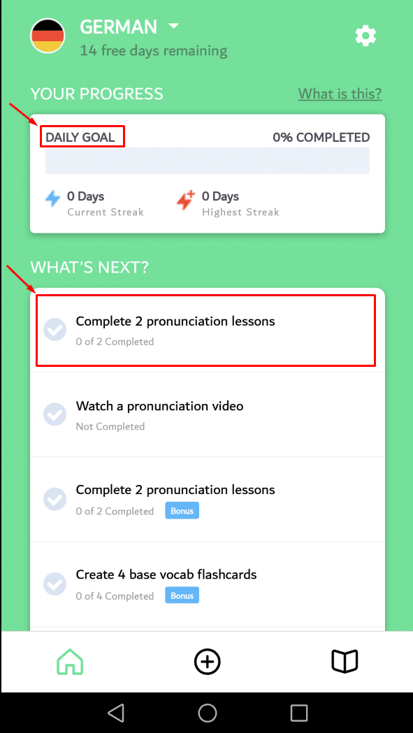 خامساً : ستظهر لك واجهة توضح لك هدفك اليومي والمهام التي يجب عليك إنجازها حلال كل يوم :