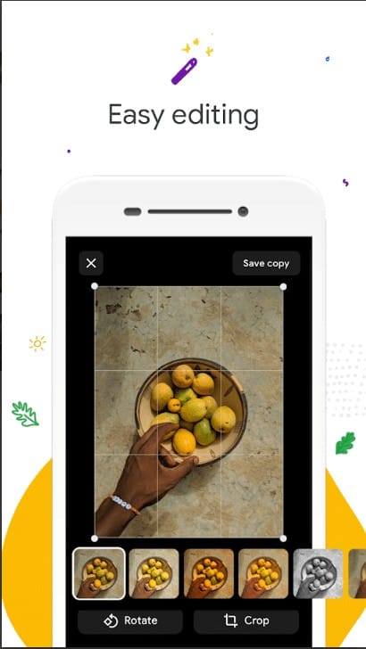 - يتيح لكل التطبيق مجموعة رائعة من أدوات التعديل مثل ” التحسين التلقائي ” التي تساعدك علي ظهور الصور بشكل أفضل .