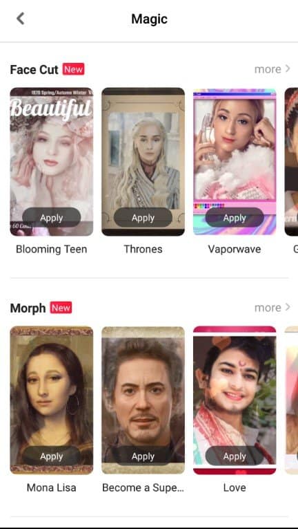 - يوفر لك التطبيق خاصية Super me المميزة والسريعة التي تقوم بتحويل صورك إلي صور أخري .