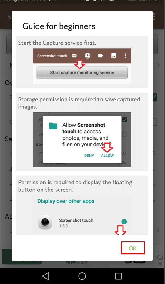 ثانياً : قم بفتح التطبيق ستجد التطبيق يعرض عليك واجهة إرشادية لطريقة الاستخدام فاضغط علي Ok كما هو موجود في الصورة التالية :