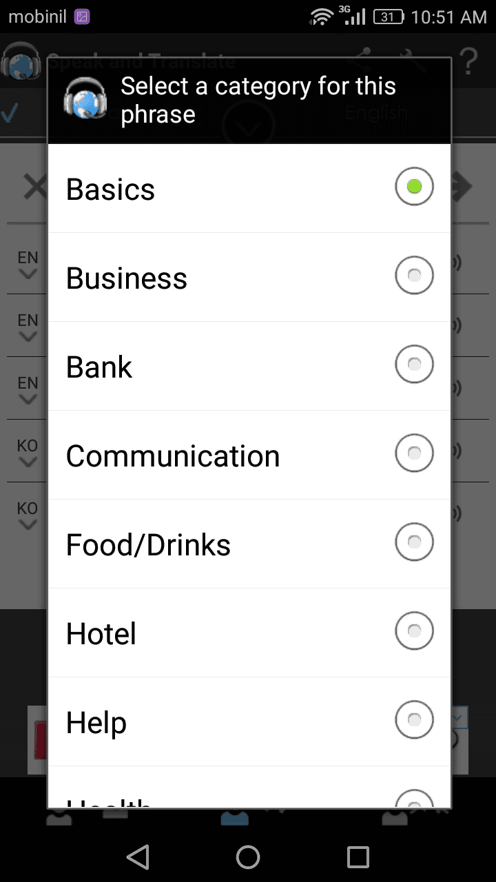سادساً : يمكنك تعيين بعض الجمل المفضلة لديك التي تستخدمها بشكل مستمر وتصنيف هذه الجمل حسب نوعها إن كانت عمل أو تخص الفنادق أو الجمل الشائعة في حياتنا اليومية .