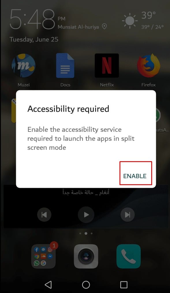 ثم بعد ذلك يمكنك تشغيل أي تطبيقين في نفس الوقت علي شاشة واحدة :