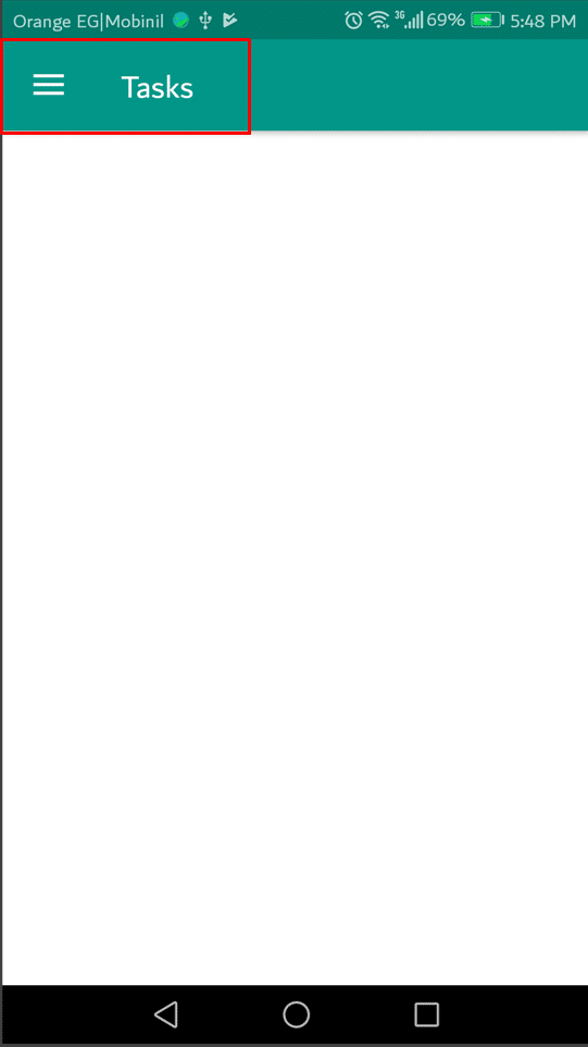 ثانياً : بعد تثبيت التطبيق علي هاتفك الاندرويد واستخدمه للمرة الأولي ستكون واجهة التطبيق كما هي موجودة في الصورة التي أمامنا ثم قم بالضغط علي رمز ” الثلاث علامات ” الموجودة أعلي التطبيق :