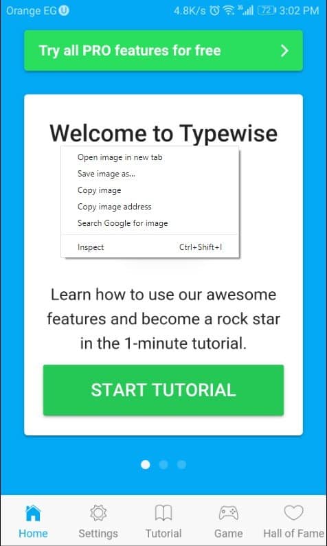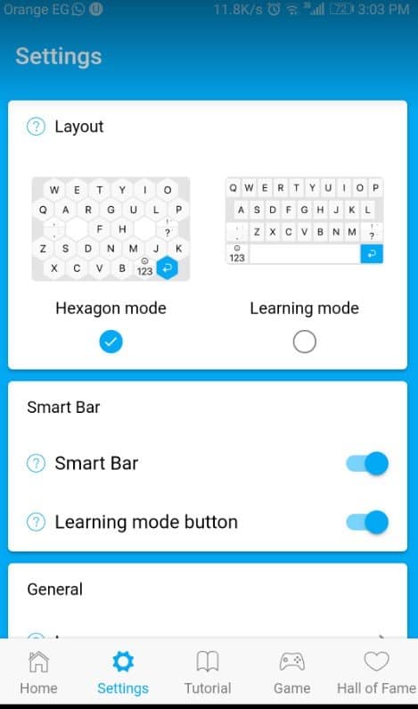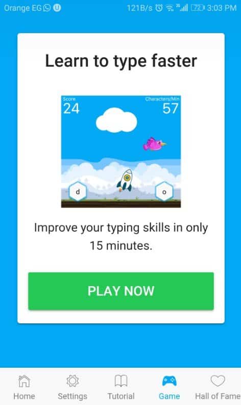 هذا بالإضافة إلي أنه هناك لعبة داخل التطبيق يمكنك من خلالها البدء في التعلم كيف يمكنك الكتابة بسرعة على تلك الكيبورد الرائعة .