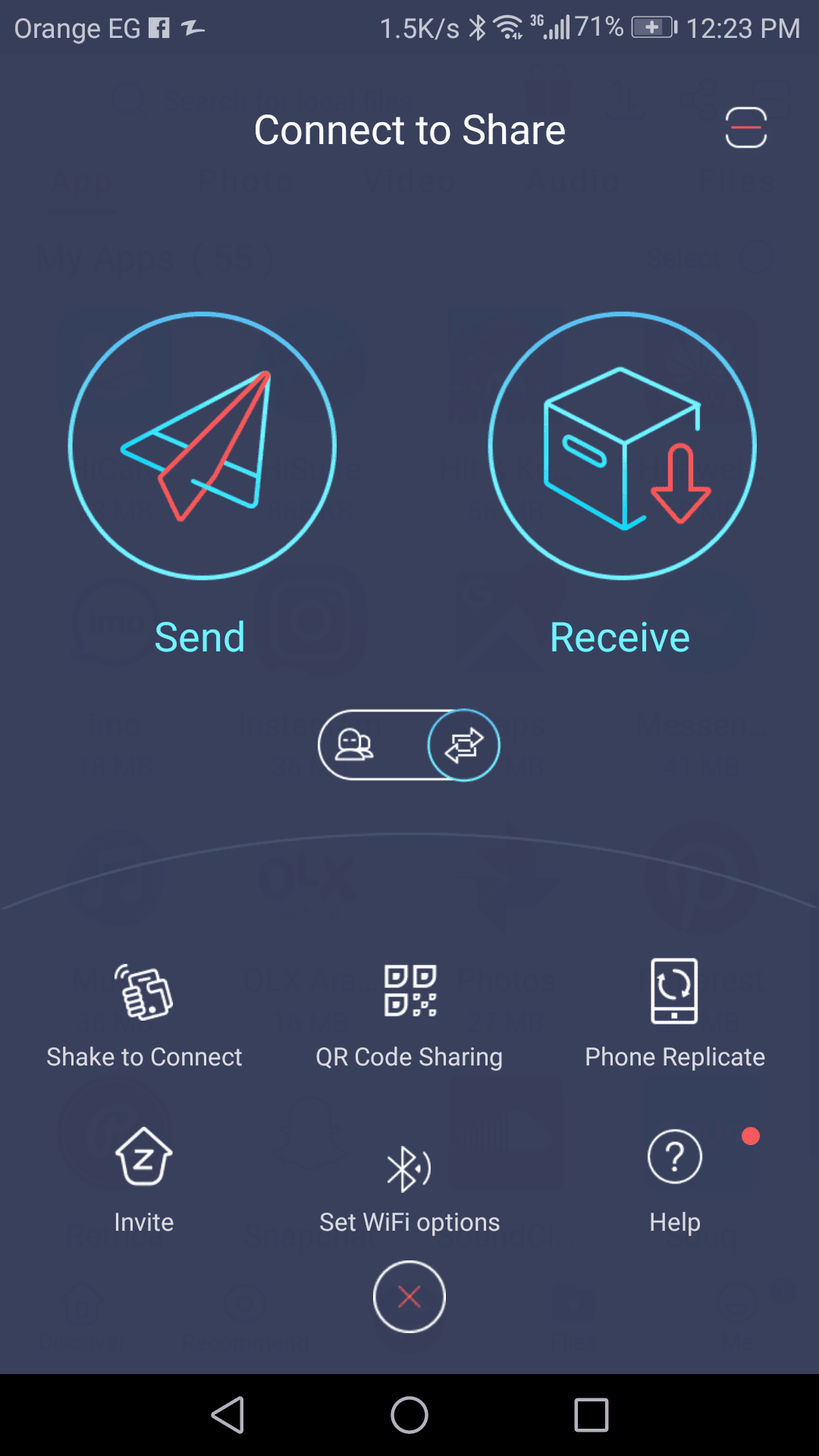 وفي النهاية ستتمكن من مشاركة ما قمت بتحديده بكل سهولة ولكن يشترط أولاً وجود التطبيق على هاتف الشخص المرسل إليه ويجب أن يقوم أيضاً بالضغط على Receive .