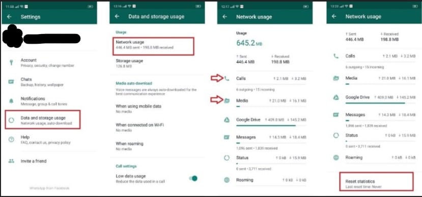 يوفر لك تطبيق واتساب أمكانية معرفة البيانات التي قمت باستخدامها خلال استخدامك التطبيق بشكل تفصيلي لمقدرا البيانات التي قمت باستهلاكها وإليكم خطوات معرفة بيانات الاستهلاك :