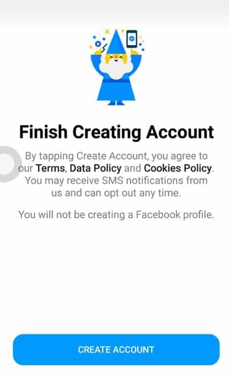 وأخيراً قم بالضغط على Create Account وعلى الفور ستتمكن من البدء في استخدام تطبيق ماسنجر على هاتفك الاندرويد بدون حساب فيس بوك وبسهولة شديدة