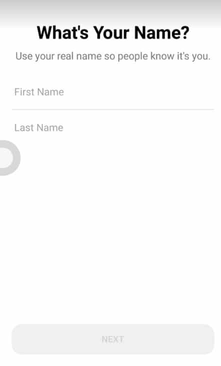 والآن قم بإدخال الاسم الأول والثاني ثم قم بالضغط على Next من أجل الاستمرار في عملية إنشاء الحساب كما هو بتلك الصورة بالضبط .