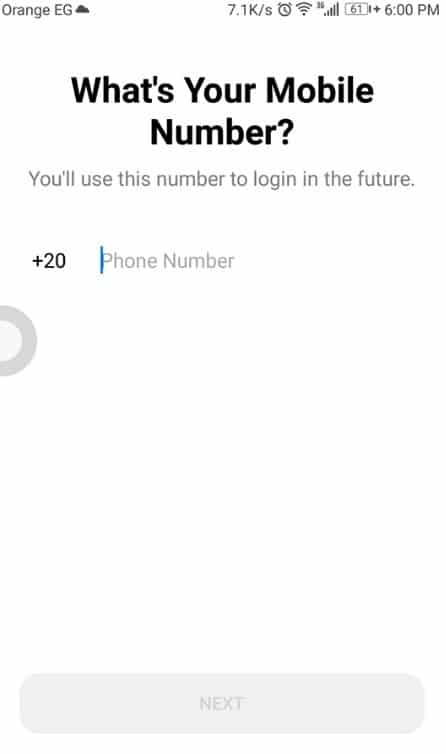 بعد ذلك قم بإدخال رقم هاتفك من أجل إنشاء الحساب ومن الجدير بالذكر أن رقم الهاتف هو من الشروط الأساسية لعمل حساب على ماسنجر فلا يمكنك الاستعانة بالبريد الإلكتروني للقيام بتلك المهمة كما هو موضح بتلك الصورة بالضبط .