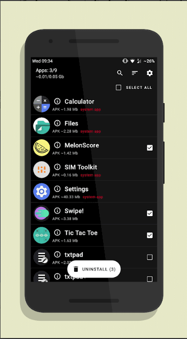 يمكنك حذف جميع التطبيقات الموجودة علي هاتفك الاندرويد من خلال تطبيق UnApp الذي يوفر لك تحديد أكثر من تطبيق وإزالته من هاتفك وهذه بالتأكيد خطوة مهمة وسريعة أفضل من فكرة مسح تطبيق ثم تطبيق بل عند تحديد التطبيقات التي تود حذفها ستقوم بحذفهما من هاتفك مرة واحدة وهكذا ستكون انتهت العملية بنجاح .