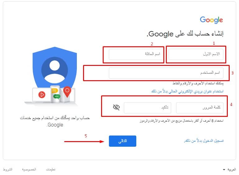 الخطوة الثانية : إنشاء حساب جديد على Google