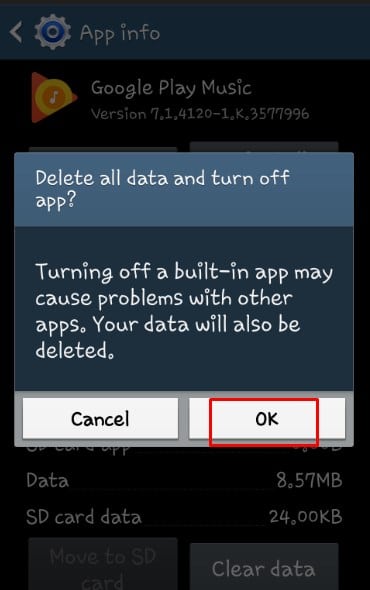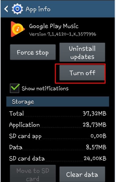 ثانياً : بعد ذلك قم بالذهاب إلي التطبيقات المحملة Downloaded وقم باختيار التطبيق الذي تريد أن تقوم بإخفائها من واجهة الهاتف مثال Google Play Music واضغط عليه كما هو موضح في تلك الصورة .