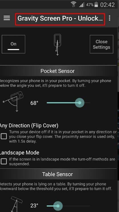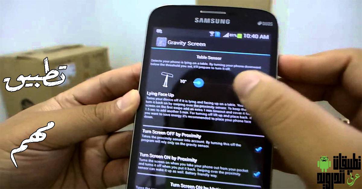 إذا كنت تريد برنامج سهل الاستخدام ومتعدد الخيارات فإليك برنامج Gravity Screen – On/Off والذي يمكنك تحميله على جميع هواتف الاندرويد بدءاً من إصدار 4.0 فيما فوق ،ويتميز الهاتف بإمكانية بقفل الشاشة عن طريق قلب الهاتف ناحية الشاشة ليتم قفل الشاشة في الحال ،والنقر مرتين عليها ليتم تشغيلها في الحال ،والبرنامج يدعم اللغة العربية وتستطيع تحميله عن طريق الضغط هنا .