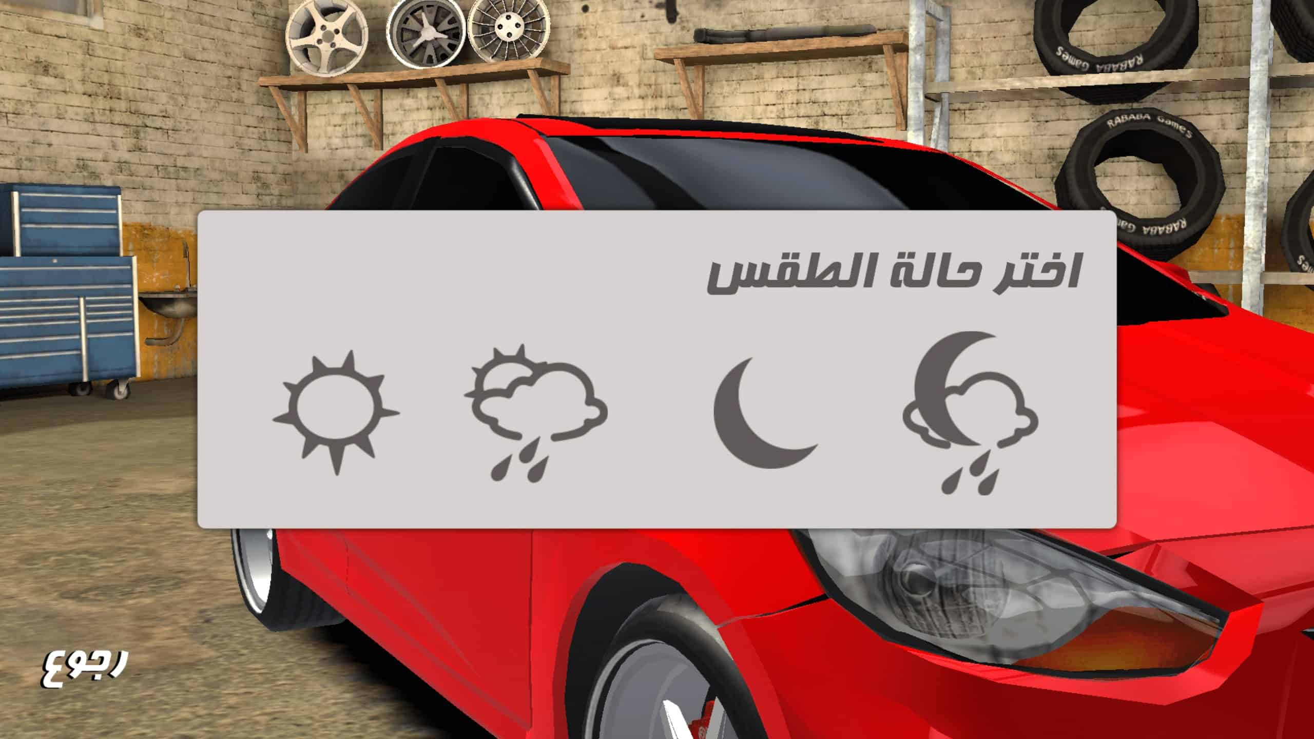 بعدها يحولك إلى أعدادات السيارة التي تريد إن تلعب به وهناك يجعلك تتحكم قي كل شئ فستجد سهم اسفل بالضغط عليه تجد العديد من السيارات كما موضح في الصورة التالية :