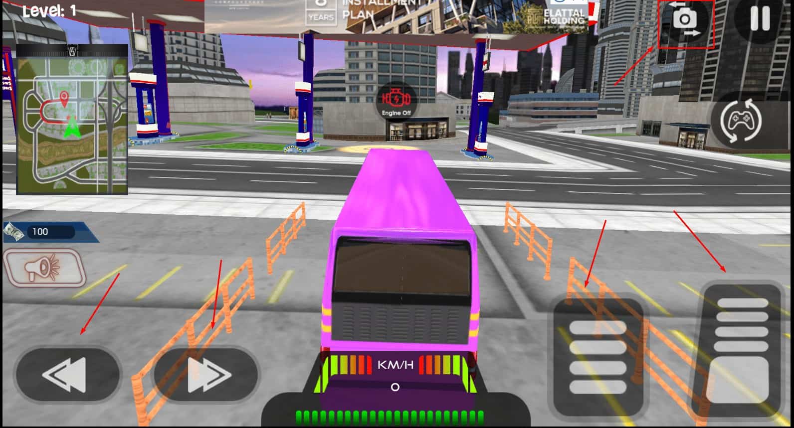 الخطوة السادسة : ستبدأ اللعب علي الفور ويمكنك استخدام الأدوات المتاحة لك علي الشاشة لقيادة الحافلة بالطريقة المناسبة واتبع الخريطة حتي تستطيع تنفيذ المهمة المطلوبة منك لتذهي بعد ذلك للانتقال إلي المستوي الثاني :