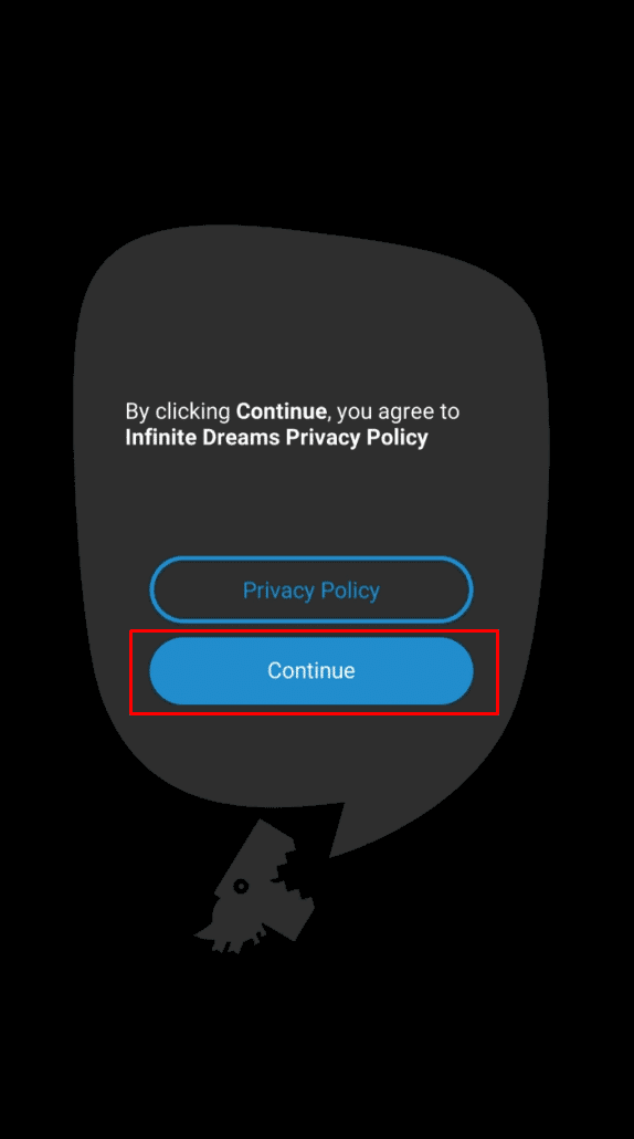 أولاً : بعد أنتهاء عملية التثبيت علي هاتفك الاندرويد ستطلب منك اللعبة الموافقة علي شروط الأحكام والاستخدام وللموافقة أضغط علي Continue كما هو مُشار إليه في الصورة :