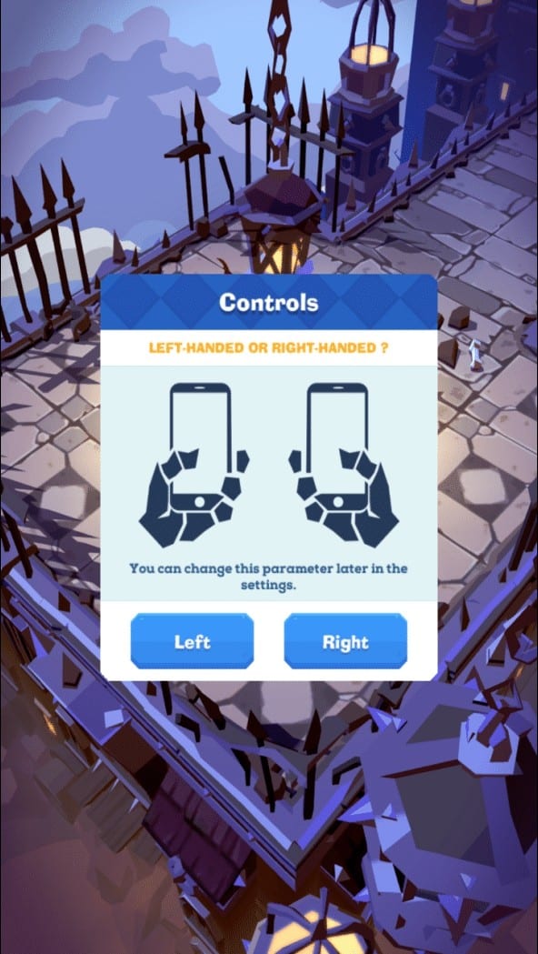 الخطوة الثالثة : ثم ستطلب منك اللعبة الضغط علي طريقة تحكم اللعب علي هاتفك سواء كنت تريد اللعب باليد اليمني أو باليد اليسري كما هو موجودة أمامنا في الصورة التالية :