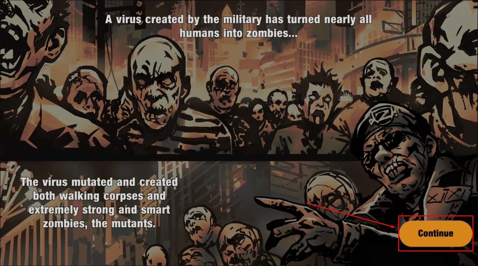 ستبدأ المعركة القوية بين المحاربين وجحافل الزومبي المتواجدين في كل مكان في أجل القضاء علي الزومبي والحفاظ علي البشرية وعند أجتياز مستوي ستجد مستوي أخر أصعب وهكذا ستستمر اللعبة .
