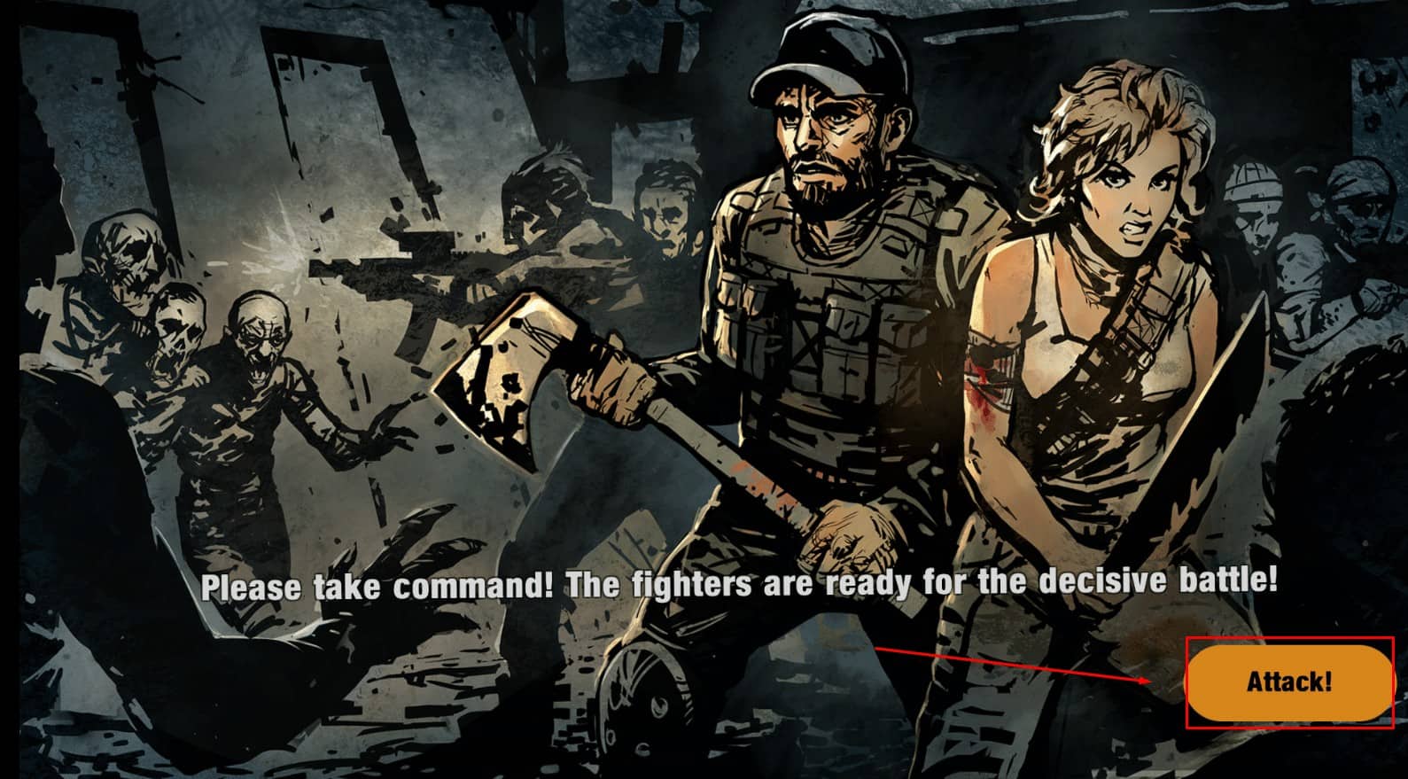 ثالثاً : ثم ستظهر لك واجهة أخيرة فأضغط علي Attack لبدء المعركة علي الفور كما هو مُشار إليه في الصورة التالية :