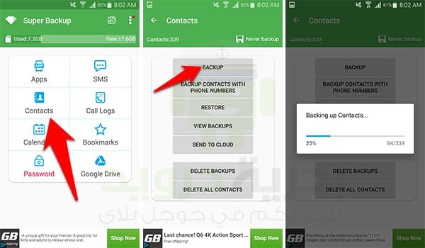 السلام عليكم جميعاً أعزائي الكرام متابعي موقعنا المتواضع الذي هدفه الأول مساعدتكم في حل جميع مشاكل هاتفك لقد وصلني رسائل كثيرة من أصدقاء موقعنا عن طريق صفحة اتصل بنا طلبوا فيها حل لمشكلة تكاد تكون بسيطة ولكنها في غاية الأهمية وهى عندما تقوم بتغيير هاتفك الاندرويد و تصبح من مستخدمي هواتف الأيفون ستجد مشكلة كبيرة في البداية في التعامل وذلك مقارنة لسهولة استخدام نظام الاندرويد ولكن ستجد مشكلة هي الأهم حيث تحتاج إلي نقل الاسماء ( جهات الاتصال ) من هاتفك الاندرويد إلى هاتف الأيفون تكون غير قادر علي نقل جميع الرسائل و العديد من الملفات الخاصة بك على هاتفك الاندرويد دفعة واحدة ولكنى وجدت الحل الأكثر من رائع والذي يمكنك من نقل الاسماء والرسائل من سامسونج إلى أيفون ( ليست هواتف سامسونج فقط ولكن لجميع هواتف الاندرويد أيضاً ) وذلك عن طريق تطبيق Super Backup & Restore .