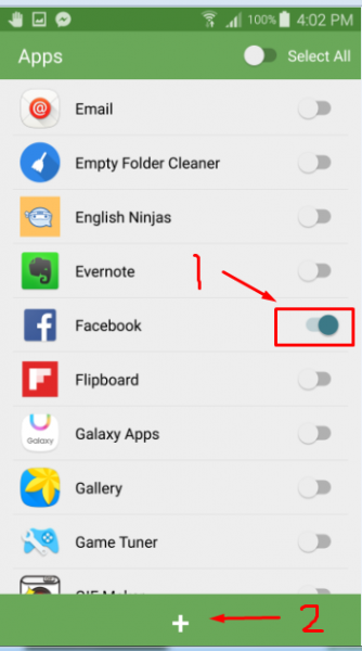 ثالثاً : ستجد في الأعلى الميزة الثانية و هي وضع حماية لأي تطبيق تريده ووضع رقم سري له كما هو موضح بالصور التالية فعليك إن تقوم باختيار التطبيق و تفعيل الزر الذي أمامه ثم الضغط على علامة زائد + و بهذا تكون وضعت باسورد له :