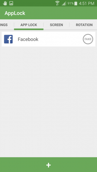 ثالثاً : هناك ميزة جديدة رائعة و هي عند أصافة رقم سرى لتطبيق معين يمكن الضغط على كلمة Fake الموجود بجانب التطبيق حيث يجعل من يفتح التطبيق تظهر له رسالة و كأن التطبيق لا يعمل كما موضح بالصور أمامك :