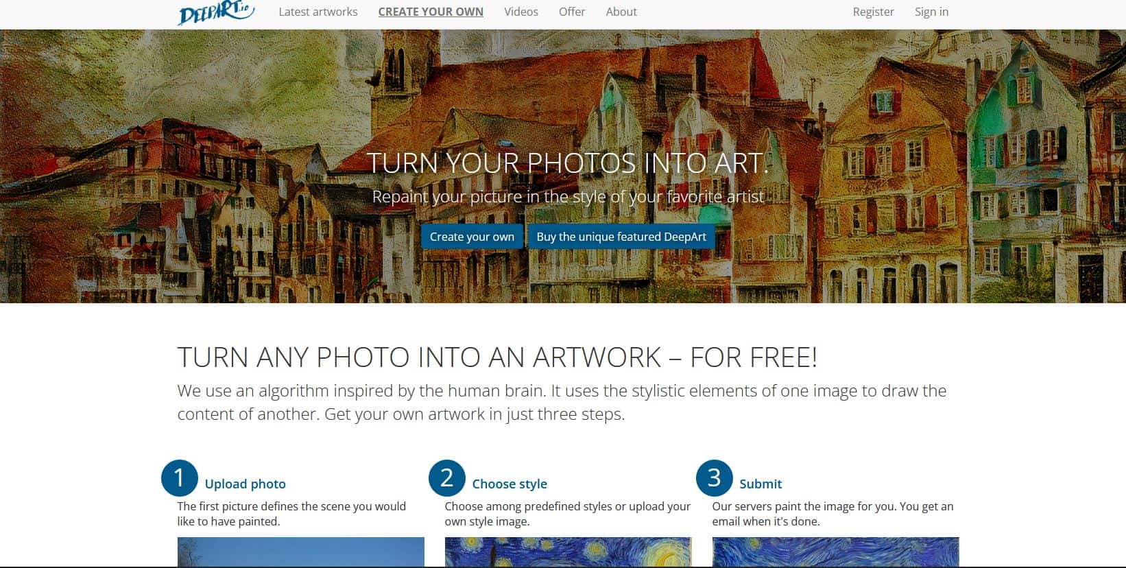 موقع DeepArt هو موقع لخدمات تحويل الصور الى 3D اون لاين يقدم لنا الموقع العديد من الخدمات الرائعة من ضمنهم تلك الخدمة التي يبحث عنها الكثير من المستخدمين يحتوى الموقع على العديد من المؤثرات التي تتناسب مع جميع أذواق المستخدمين كما يحتوى على عدد معقول من مؤثرات التحويل الكرتونية والعديد من مؤثرات تحويل صور الرسم الموقع بسيط للغاية وذلك بسبب واجهته البسيطة التي يقدمها الموقع للمستخدمين حتى يتمكنوا من التعامل معه بكل سهولة نستطيع رفع المؤثرات الخاصة بنا في حالة لم تعجبنا المؤثرات الموجودة على الموقع ونستطيع استخدام الموقع من خلال الرابط الموجود أسفل الفقرة .