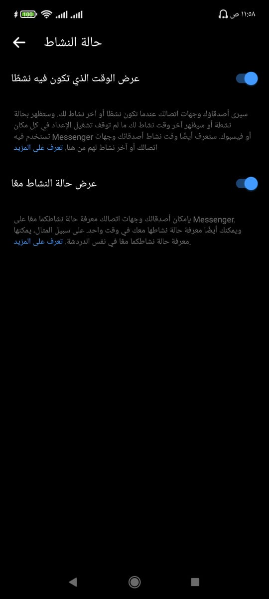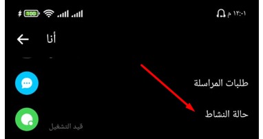 • ستقوم بالانتقال إلي الإعدادات وستجد أمامك خيار حالة النشاط قم بالضغط عليه .