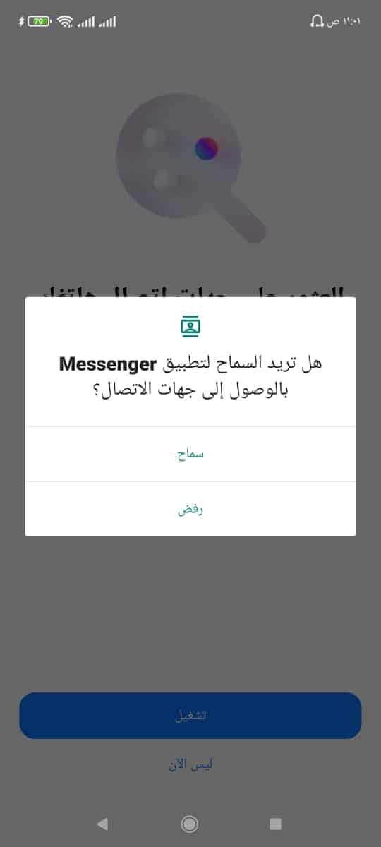 • ثم سيسألك هل تريد السماح للتطبيق بالوصول إلي جهات اتصالاك كما موضح بالصورة التالية .