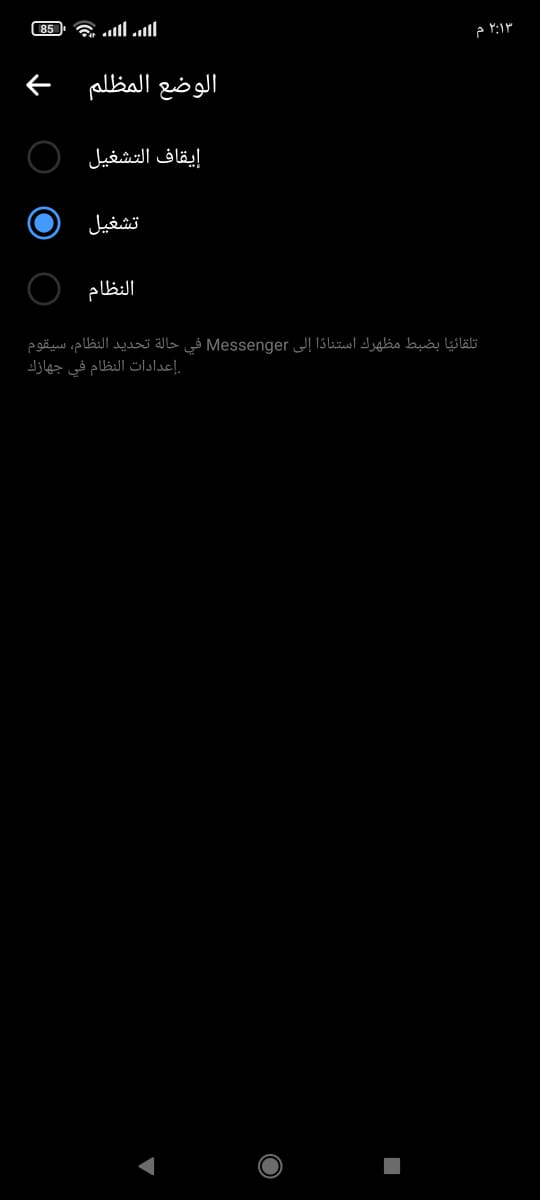 • يتيح لك ميزة إراحة عيناك من الإضاءة الشديدة وتحويل الماسنجر إلي الوضع المظلم .